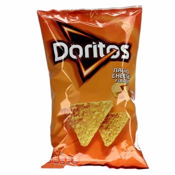 Oplev en dejlig eksplosion af smag i munden med Doritos Nacho Cheese Tortilla Chips. De crunchy chips er lavet af ristet majs og krydret derefter med smagen af krydret ost. Spis alene eller dypp i salsa for en helt ny smagsoplevelse.