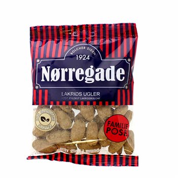 In Danimarca, amiamo la liquirizia e le caramelle forti. Ecco un altro del suo genere. NøRregade Licorice Ugler è una caramella di liquirizia dolce e ricca. NøRregade utilizza solo colori naturali quando si fa caramelle. Contenuto della borsa: 310 grammi.