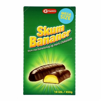 Bananele din spumă de la Carletti sunt probabil multe fructe preferate ale copiilor și adulților! Spuma galbenă moale cu aromă de banană este acoperită cu o ciocolată bogată de calitate închisă, ceea ce oferă bananelor din spumă gustul lor iconic. Este favorit cu danezii din 1953.