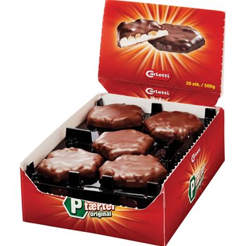 P-tartele P incomparabile de la Carletti constau din nougat francez moale, sunt presărate cu generozitate cu alune și acoperite cu ciocolată. Este aproape imposibil să vă mulțumiți doar cu unul, așa că este bine să primiți 20 în acest pachet.